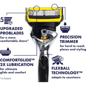 Gillette ProGlide Shield Razor for Men, Handle + 1 Blade Refill – LUBRICATION BEFORE AND AFTER the razor blades helping shield from irritation while you shave. 2X Lubrication for Ultimate Comfort – UPGRADED PROGLIDE BLADES LASTING 3X LONGER: 5 ultra-sharp razor blades for ultimate closeness (Vs Fusion5) – 1 BLADE REFILL = 20 SHAVES. Get up to 20 shaves per blade refill – PRECISION TRIMMER: On the back for hard-to-reach places. Achieve a cleanly sculpted shave – FLEXBALL HANDLE TECHNOLOGY: Gillette ProGlide Shield responds to contours to get virtually every hair