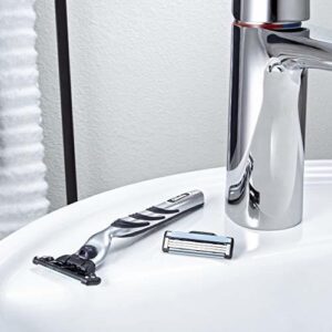 Gillette Mach3 Razor Refills for Men, 8 Razor Blade Refills – CLASSIC CLOSE SHAVE: 3-bladed mens razor that gives you a close shave without the fuss. Features open-blade architecture for easy rinsing – UPGRADED LUBRASTRIP for enhanced glide: An improved lubrication strip for extra glide (vs previous Mach3) – 1 BLADE = 15 SHAVES. Get up to 15 shaves from each Mach3 razor refill – STRONGER-THAN-STEEL razor blades that stay sharper longer (vs. Sensor3) – Pairs perfectly with Gillettes Series Shaving Gel for added protection from shaving irritation