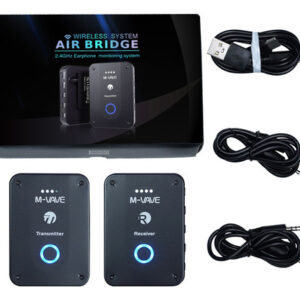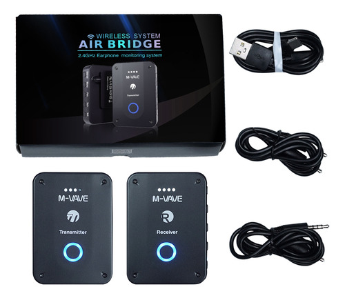 Acessórios incluídos: transmissor de monitor de fone de ouvido sem fio × 1, receptor de monitor de fone de ouvido sem fio × 1, cabo de carregamento USB × 1, cabo de áudio × 2