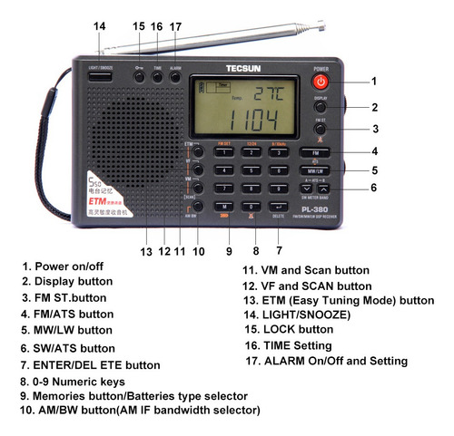 O rádio estéreo de demodulação digital de banda completa PL-380 preto é baseado na tecnologia de demodulação digital DSP e é um rádio de demodulação digital multibanda DSP. A primeira aplicação do modo de sintonia ETM (Easy Tuning Mode) melhora muito a conveniência de ouvir rádio. Espero que este rádio leve ajude você a curtir o rádio e lhe traga alegria!