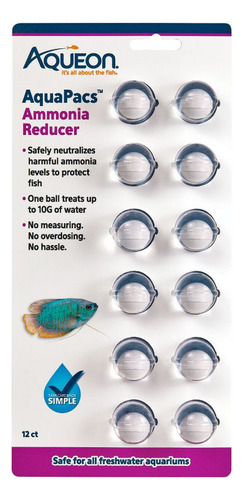 Neutraliza com segurança os níveis nocivos de amônia para proteger os peixes Use ao adicionar nova água da torneira ao aquário ou quando altos níveis de amônia são detectados Promove um ambiente aquático bem equilibrado para peixes felizes e prósperos Uma bola trata até 10 G de água. Sem medir. Sem sobredosagem. Sem problemas. Seguro e fácil de usar, eliminando suposições sobre cuidados com a água. Seguro para todos os aquários de água doce.