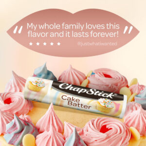 Presenteie seus lábios com nosso delicioso protetor labial Cake Batter, mantendo-os macios, suaves e reabastecidos. Nossos pacotes de 12 ChapStick Cake Batter são um ótimo presente de aniversário para amigos e familiares, especialmente quando combinados com nossos protetores labiais de sorvete. – FAVORITO DOS FÃS DE CHAPSTICK: compre 12 tubos de ChapStick Cake Batter, um protetor labial aromatizado que combina função e diversão. – PROTETOR LABIAL FAVORITO DAS AMÉRICAS: Você não pode errar com um clássico americano que você conhece e adora. Desfrute de lábios macios e hidratados onde quer que a vida o leve com o ChapStick. – Cura lábios rachados: nossos protetores labiais testados pelo tempo, sem parabenos e sem crueldade deslizam sobre lábios secos e rachados sem ficarem pegajosos ou oleosos. – COMO USAR: Aplique o ChapStick diariamente para ajudar a manter seus lábios sedosos e macios. É perfeito sozinho ou como base para a cor dos lábios. – CONFIE NO CHAPSTICK: Dos especialistas americanos em cuidados labiais, confiáveis há mais de 130 anos, nossas formulações clássicas não decepcionarão.