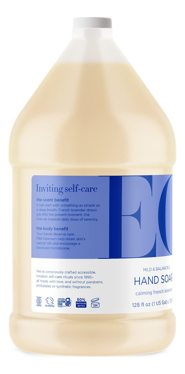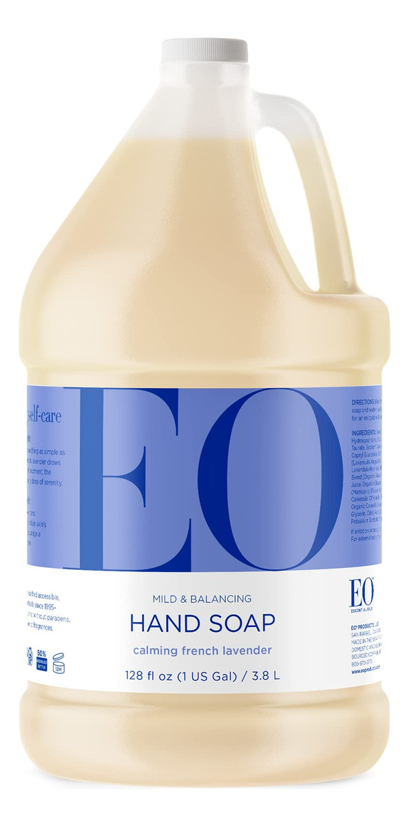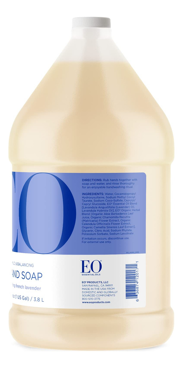 Refil de sabonete líquido para mãos EO, 1 galão, lavanda francesa, limpador suave orgânico à base de plantas com óleos essenciais puros — contém (1) frasco de 1 galão (128 onças) de sabonete líquido para mãos EO French Lavender — Óleo essencial relaxante, calmante e puro de lavanda. Só de pensar nesse aroma calmante, você pode fazer uma pausa, respirar fundo e expirar. Este sabonete para as mãos contém extratos botânicos ricos em nutrientes e produtos de limpeza suaves. Respire o aroma suave do óleo essencial puro de lavanda toda vez que lavar as mãos. Olá, aromaterapia – Os sabonetes líquidos para mãos EO são feitos com ingredientes orgânicos e são livres de triclosan, sem fragrância sintética, sem crueldade, sem parabenos, sem sulfato e são certificados como isentos de glúten – o EO ajuda você a criar momentos meditativos de autocuidado por meio da aromaterapia com ingredientes seguros, naturais, orgânicos e cultivados de forma sustentável