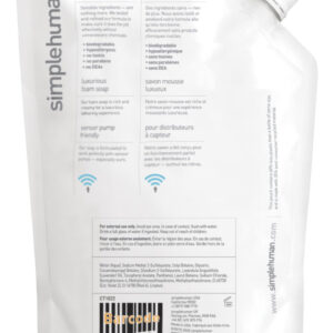 Bolsa de recarga de sabonete líquido hidratante para mãos simplehuman Lavender, 34 fl. Oz. – LAVANDA – Um aroma sedutor de lavanda florescente com toque de jacarandá e ervas frescas. – O SABONETE PERFEITO – A consistência perfeita para bombas de sensores, sem obstruções ou gotejamentos. Dispensa a quantidade correta de forma rápida e consistente. – SIMPLES, SENSATO E LIMPO – Ingredientes sensatos e nada mais, esta nova fórmula é biodegradável, hipoalergênica e não contém parabenos ou DEAs. E é livre de sulfato para ser ainda mais suave com a pele. – Reabasteça e reutilize – Jogar fora bombas de plástico descartáveis repetidamente prejudica o meio ambiente e sua carteira. As bolsas de sabão que podem ser fechadas novamente são uma maneira mais inteligente de comprar sabão. – SEM CRUELDADE – Não testadas em animais. – MATERIAIS RECICLÁVEIS – A bolsa e a tampa de rosca são recicláveis, onde existem instalações.