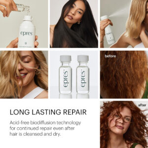 A fórmula altamente concentrada e sem água do Epres Bond Repair Treatment consiste em apenas quatro ingredientes 100% veganos e biodegradáveis em uma única solução de uma etapa que funciona em apenas 10 minutos para restaurar a saúde dos cabelos danificados. Nosso tratamento com patente pendente reparará os danos causados por processos químicos, térmicos ou mecânicos, revelando seu cabelo mais saudável até agora. É seguro para todos os tipos e cores de cabelo, incluindo cabelos grisalhos. Na Epres, usamos química de ponta para criar as fórmulas mais avançadas disponíveis. Desenvolvido pelo cientista de materiais de renome mundial, Eric Pressly, nosso tratamento revolucionário é o futuro do cuidado capilar de alto desempenho. Seja usada em casa ou no salão, a tecnologia de reparo adesivo em uma etapa da epres oferece resultados consistentemente superiores e de nível profissional. O prático frasco de spray reutilizável e as recargas sem água são mais sustentáveis e melhores para o planeta. Nosso kit inicial inclui um prático frasco de spray e dois frascos de 15 ml de concentrado que você mistura com água e agita antes de usar. Em seguida, borrife no cabelo e aguarde 10 minutos. Usar este tratamento uma ou duas vezes por semana proporcionará cabelos mais macios, fortes e saudáveis. – Melhore a saúde do seu cabelo: a fórmula patenteada de reparação óssea do Epres recupera ativamente o cabelo e corrige os danos causados por produtos químicos, calor e movimentos. Com apenas 4 ingredientes veganos e biodegradáveis, o tratamento reparador Epres Bond repara o cabelo e reduz o crespo para deixá-lo mais macio, forte e saudável. – Tratamento capilar para cabelos danificados: o tratamento reparador Epres Bond deixará seu cabelo liso, brilhante, sem frizz e mais forte, mesmo que esteja danificado ou tenha pontas duplas devido à cor, descolorante, calor térmico ou ao meio ambiente. – Bom para todos os tipos de cabelo: o O tratamento Epres Bond Repair é um tratamento de uma etapa que torna seu cabelo saudável novamente e leva apenas 10 minutos. Funciona para todos os tipos de cabelo, incluindo cabelos lisos, ondulados, crespos e encaracolados. – Fácil de usar e conveniente: o refil de tratamento reparador Epres Bond vem com dois frascos de concentrado de 15 ml que você mistura com água e agita antes de usar. Em seguida, borrife no cabelo danificado e espere 10 minutos. Use-o uma ou duas vezes por semana para cabelos macios, saudáveis, fortes e hidratados. – Vegano e livre de crueldade: a fórmula altamente concentrada e sem água do Epres Bond Repair Treatment consiste em apenas quatro ingredientes biodegradáveis 100% veganos com tecnologia de biodifusão que permite que o cabelo continue a se reparar mesmo depois de seco.