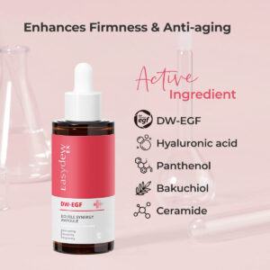 Este intensificador hidratante intensivo com Bakuchiol ajuda a reduzir rugas, linhas finas, olheiras e até cicatrizes de acne. Para reter a umidade e a oleosidade para uma pele equilibrada. – [DW-EGF] Conhecida como a proteína da juventude, o EGF é uma proteína natural encontrada no corpo que produz colágeno e elastina. Devido a essas propriedades regenerativas, o EGF reduz os sinais visíveis de envelhecimento, como: rugas, flacidez, vermelhidão, linhas finas e manchas escuras. – [Bakuchiol] Adequado para todos os tipos de pele, incluindo pele sensível, rosácea, eczema e propensa a dermatite, este soro ajuda a reduzir rugas, linhas finas, cicatrizes de acne e hiperpigmentação, estimulando a renovação das células da pele. Também ajuda a proteger a pele dos danos causados pelos radicais livres. O bakuchiol é comumente comparado ao retinol, mas causa baixa irritação. – [Ácido Hialurônico/Pantenol/Ceramida] Este soro rico, mas leve, proporciona hidratação instantânea à pele desidratada. Conhecida por suas propriedades hidratantes e calmantes, ajuda a melhorar a hidratação, elasticidade e suavizar a textura, resultando em uma pele mais vibrante e radiante. – [Como usar] Limpe o rosto com água e mantenha-o úmido. Aplique um conta-gotas na pele e dê um tapinha na pele começando pelo centro do rosto em um movimento em forma de coração.