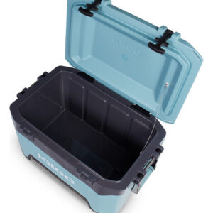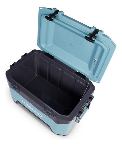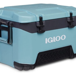 Refrigerador BMX Igloo 52 Qt Celadon – A construção pesada moldada por sopro oferece durabilidade avançada – Tampa durável e emborrachada As travas em T fornecem um fechamento seguro e trava no frio – A alça giratória de três pontos possui reforço de aço inoxidável e alça de borracha para uma fixação segura – A tecnologia Cool Riser melhora o desempenho de resfriamento ao afastar o corpo do refrigerador das superfícies quentes – A régua de peixe moldada na tampa permite que você meça sua captura instantaneamente
