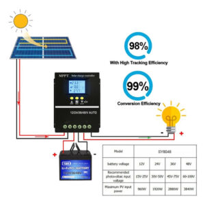 controlador de carregamento solar com o algoritmo de controle MPPT mais avançado e o ponto de potência máxima do painel fotovoltaico pode ser rastreado rapidamente em qualquer ambiente para que ele possa obter a máxima potência do painel solar e melhorar significativamente a utilização de energia no sistema solar. Pode ser usado em estação base de comunicação, sistema de alimentação doméstica, semáforo, lâmpada solar de rua, sistemas de lâmpadas de jardim, etc.