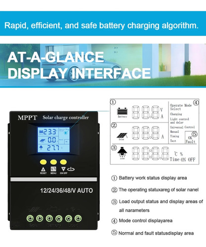 Controlador De Carga Solar 100a Mppt 12v 24v 36v 48v Display |