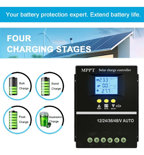 Nota: É compatível com controladores solares MPPT+PWM de alta qualidade, não 100% Ture MPPT