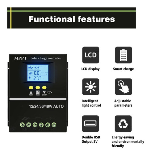 Controlador De Carga Solar 100a Mppt 12v 24v 36v 48v Display