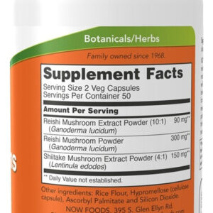 REI-SHI Reishi Mushrooms Cogumelo 270mg 100 VCAPS Now Foods |