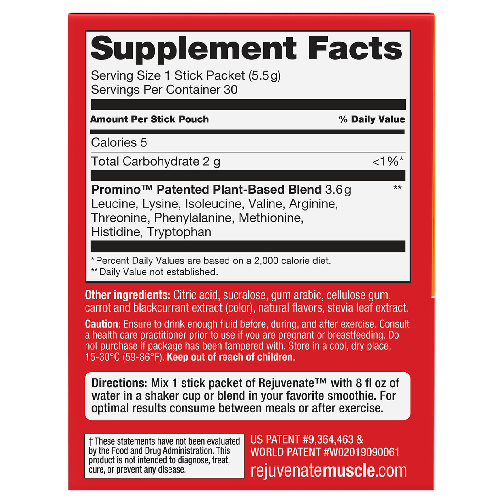 | Mistura Patenteada Promino™ à Base de Plantas Leucina, Lisina, Isoleucina, Valina, Arginina, Treonina, Fenilalanina, Metionina, Histidina, Triptofano |