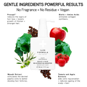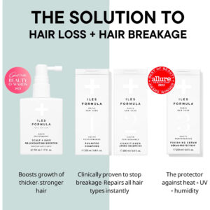 O minimalismo encontra o máximo desempenho com nosso intensificador de rejuvenescimento capilar de alto desempenho, que é uma mistura exclusiva de Procapil com outros estimulantes capilares conhecidos; wasabi, tomate, extratos de maçã, biotina e 3 resíduos de aminoácidos para ajudar a reduzir os sinais de queda de cabelo, estimular o crescimento de cabelos mais espessos e fortes para mulheres, homens e adolescentes. Queda de cabelo versus quebra de cabelo – Muitas vezes há confusão entre os dois, pois ambos dão a impressão de uma redução na densidade do cabelo. Na verdade, são duas questões distintas. Infelizmente, alguns sofrem de ambos. O Iles Formula Scalp + Rejuvenating Booster visa especificamente a queda de cabelo e promove o crescimento de novos cabelos. O condicionador Iles Formula Shampo+ impede a quebra do cabelo sem deixar resíduos nocivos. Para obter os melhores resultados, recomendamos o uso do Iles Formula Scalp + Hair Rejuvenating Booster após o Iles Formula Shampo+ Conditioner. Isso permitirá que o Iles Formula Scalp + Hair Rejuvenating Booster incentive o crescimento necessário do cabelo sem que a quebra do cabelo impeça o processo. – TRATAMENTO PARA QUEDA DE CABELO – Um tratamento de rejuvenescimento capilar poderoso, sem medicamentos e sem drogas, com Procapil e outros estimulantes de crescimento capilar conhecidos, que promove o crescimento natural do cabelo, estimulando o crescimento na área da raiz, fortalecendo os folículos capilares e reduzindo a queda de cabelo + a quebra do cabelo, resultando em um cabelo mais forte, mais espesso e mais saudável cabelo – LIVRE DE MEDICAMENTOS + SEM RESÍDUOS – Um tratamento leave-in poderoso e de rápida absorção. Totalmente resíduo + Leve + Suave no couro cabeludo + Sem perfume + Vegano. – COMO USAR – Pulverize generosa e uniformemente nas áreas afetadas do couro cabeludo todos os dias e massageie para ativar a circulação. Continue o tratamento diariamente por no mínimo 3 meses. Use em cabelos molhados ou secos e evite contato com os olhos. Para obter os melhores resultados, use o Iles Formula Scalp + Hair Rejuvenating Booster após o shampoo e condicionador Iles Formula para permitir que o Booster estimule o crescimento necessário do cabelo sem que a quebra do cabelo impeça o processo. – PARA USO POR – Homens, mulheres e adolescentes que sofrem de queda de cabelo relacionada ao seguinte se beneficiarão de nossa fórmula: alterações hormonais (incluindo pós-parto + pré/pós/durante a menopausa), idade, estresse, relacionados à Covid sinais precoces de alopecia, medicamentos e homens começando a regredir devido ao DHT. – A fórmula YOUR HAIR'S HEALTH MATTERS Iles é baseada em 3- método de etapas conhecido como Signature Collection. Um trio de alto desempenho de Cleanse + Repair + Protect que transforma instantaneamente todos os tipos de cabelo desde o primeiro tratamento.