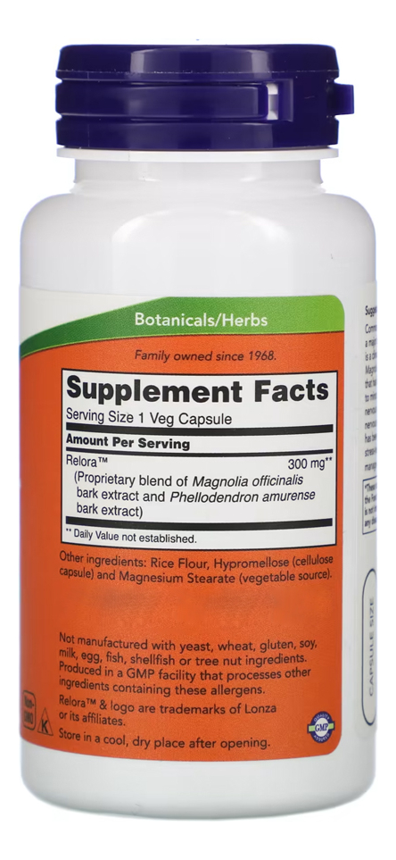 Relora Extracto 300mg Now Foods 60 Caps + Porta Cápsulas