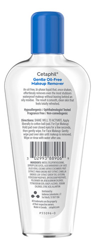 Removedor de maquiagem suave à prova d’água Cetaphil, fórmula sem óleo adequada para peles sensíveis, 6,0 onças fluidas — Removedor de maquiagem CETAPHIL GENTLE SEM ÓLEO: remove suavemente a maquiagem impermeável e de longa duração para deixar a pele limpa e revigorada — Testado por dermatologistas e oftalmologistas: remove eficazmente o rímel à prova d’água da delicada área dos olhos sem irritação ou resíduo oleoso – BOTÂNICOS CALMANTES: Formulado com aloe vera, ginseng e chá verde — Adequado para peles sensíveis: sem perfume, sem óleo, não irritante e não comedogênico — Projetado para peles sensíveis: Todos os produtos CETAPHIL são eficazes, mas não irritantes – Este produto não é selado