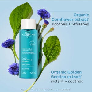 Novo removedor suave de maquiagem para olhos da Clarins | Remove a maquiagem leve a média dos olhos | Limpa, suaviza e suaviza | Condiciona os cílios | Sem óleo | Testado por oftalmologistas | Todos os tipos de pele | 4,2 onças fluidas — Removedor de maquiagem ultramacio para maquiagem leve a média. Deixa a delicada área dos olhos macia e hidratada, ao mesmo tempo que protege os cílios. Contém uma fórmula suave, com extrato calmante de genciana orgânica, para remover a maquiagem leve. – Um removedor de maquiagem diário que dissolve a maquiagem leve a média dos olhos sem deixar resíduos oleosos. Seguro para olhos sensíveis. – Molhe uma almofada de algodão com o removedor instantâneo de maquiagem para os olhos. Pressione suavemente sobre as pálpebras por 10 segundos para dissolver a maquiagem dos olhos. Passe suavemente ao longo dos cílios da raiz às pontas, sem puxar; em seguida, passe pela parte inferior dos cílios, levantando-os à medida que avança. Dobre a almofada de algodão. Seguindo a direção natural da circulação linfática, mova suavemente a almofada em direção ao canto externo do olho. Repita o procedimento usando uma almofada de algodão fresca para o outro olho.