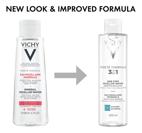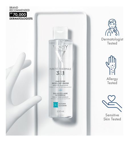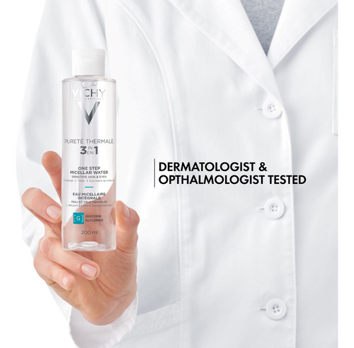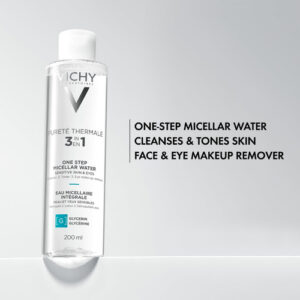 Removedor de maquiagem e tônico facial com água micelar Vichy Puret Thermale One Step | Água de limpeza micelar e vitamina B5 | Sem necessidade de enxágue | Removedor suave de maquiagem para olhos e tônico hidratante para rosto – Limpador de água micelar sem enxágue e removedor de maquiagem suave para peles sensíveis – Um tônico facial e removedor de maquiagem suave criado para peles sensíveis. Fórmula testada por dermatologistas com pantenol (vitamina B5) e 15 água vulcânica de Vichy rica em minerais para ajudar a hidratar e reforçar a barreira cutânea. Remove as impurezas causadas por fatores de exposição, como poluição, deixando a pele limpa, fortificada e suavizada. A textura refrescante semelhante à água limpa suavemente, mas com eficácia, a pele sensível. Não seca. Aroma leve e refrescante – Este limpador de maquiagem é testado por dermatologistas, sem parabenos, testado para alergias, testado para pele sensível, testado por oftalmologistas – Tônico hidratante de água micelar para rosto com vitamina b5. Formulado para peles sensíveis