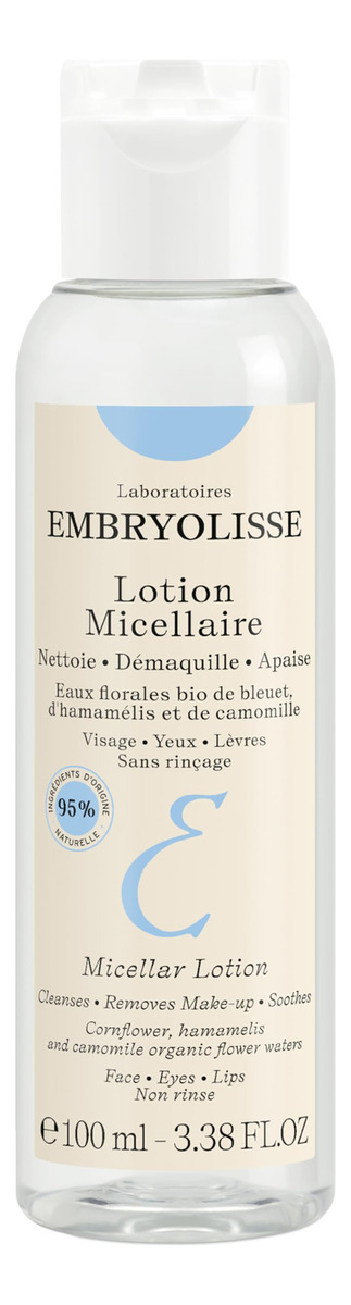 Loção micelar suave Embryolisse para rosto e olhos. Removedor de maquiagem natural de água floral e cuidado de limpeza com camomila, centáurea e hamamélis, 3,38 fl oz — Remoção eficiente de maquiagem: a tecnologia micelar dissolve rapidamente a maquiagem, as impurezas e a poluição diária sem enxágue, perfeita para peles sensíveis — Mistura de água floral: enriquecida com calmante centáurea, camomila suavizante e tonifica as águas de hamamélis — Hidratante e tonificante: fórmula com infusão de glicerina deixa a pele hidratado e tonificado, melhorando a suavidade e o conforto – Suave e calmante: adequado para todos os tipos de pele, especialmente peles sensíveis, garantindo uma sensação calmante experiência de limpeza – Ingredientes de origem natural: formulados com ingredientes de origem natural para um toque suave na pele; frasco e tampa recicláveis para um toque suave na terra