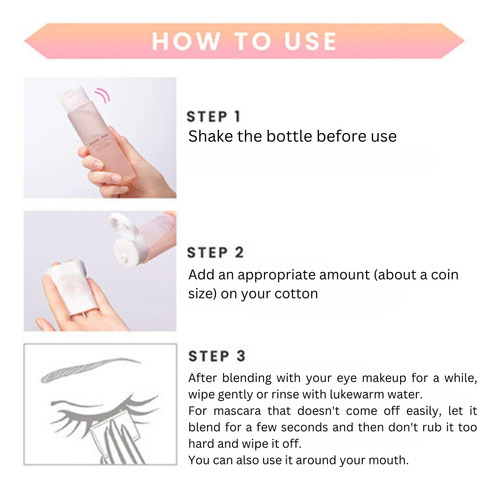 -Removedor de maquiagem bifásico Agite antes de usarPara obter melhores resultados, agite o frasco para misturar antes de aplicar. A fórmula bifásica garante uma remoção completa e fácil da maquiagem com uma almofada de algodão.