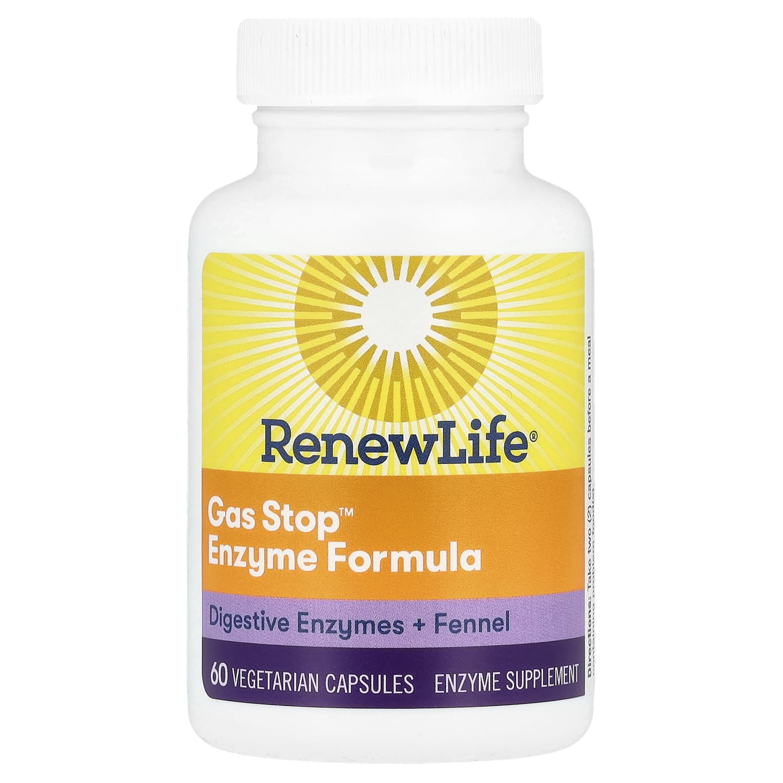 Renew Life Fórmula de Enzimas Gas Stop™ 60 Cápsulas Vegetarianas – Renew Life Suplementos Saúde Intestinal Antiácidos e Alívio Digestivo Gas & Bloat Formulas.