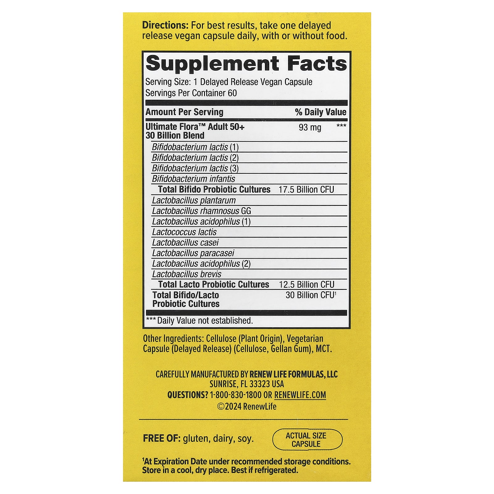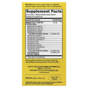 Renew Life Probiótico Ultimate Flora™ Adulto Acima de 50 Anos 60 Cápsulas Veganas – Renew Life Suplementos Saúde Intestinal Probióticos.