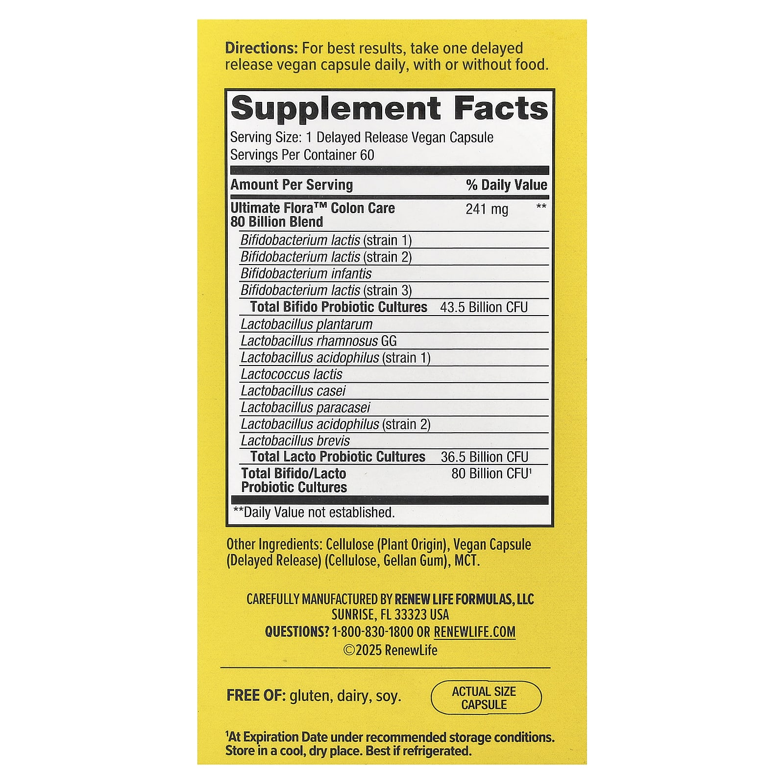 Renew Life Probiótico Ultimate Flora™ da Colon Care 60 Cápsulas Veganas de Liberação Retardada – Renew Life Suplementos Saúde Intestinal Probióticos Fórmulas de detox e limpeza Colon Cleanse.