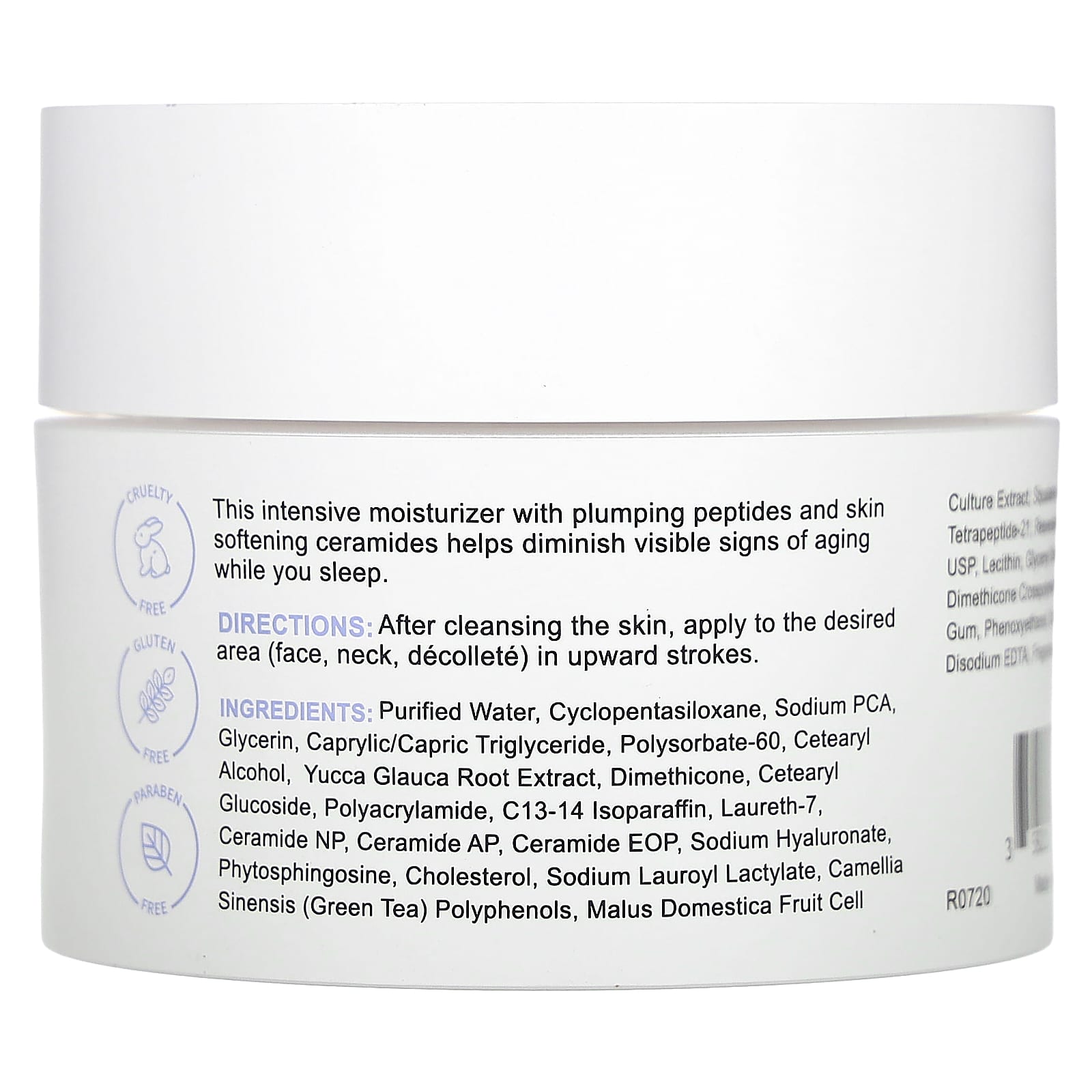Este hidratante intensivo com peptídeos revigorantes e ceramidas suavizantes da pele ajuda a diminuir os sinais visíveis do envelhecimento enquanto você dorme.