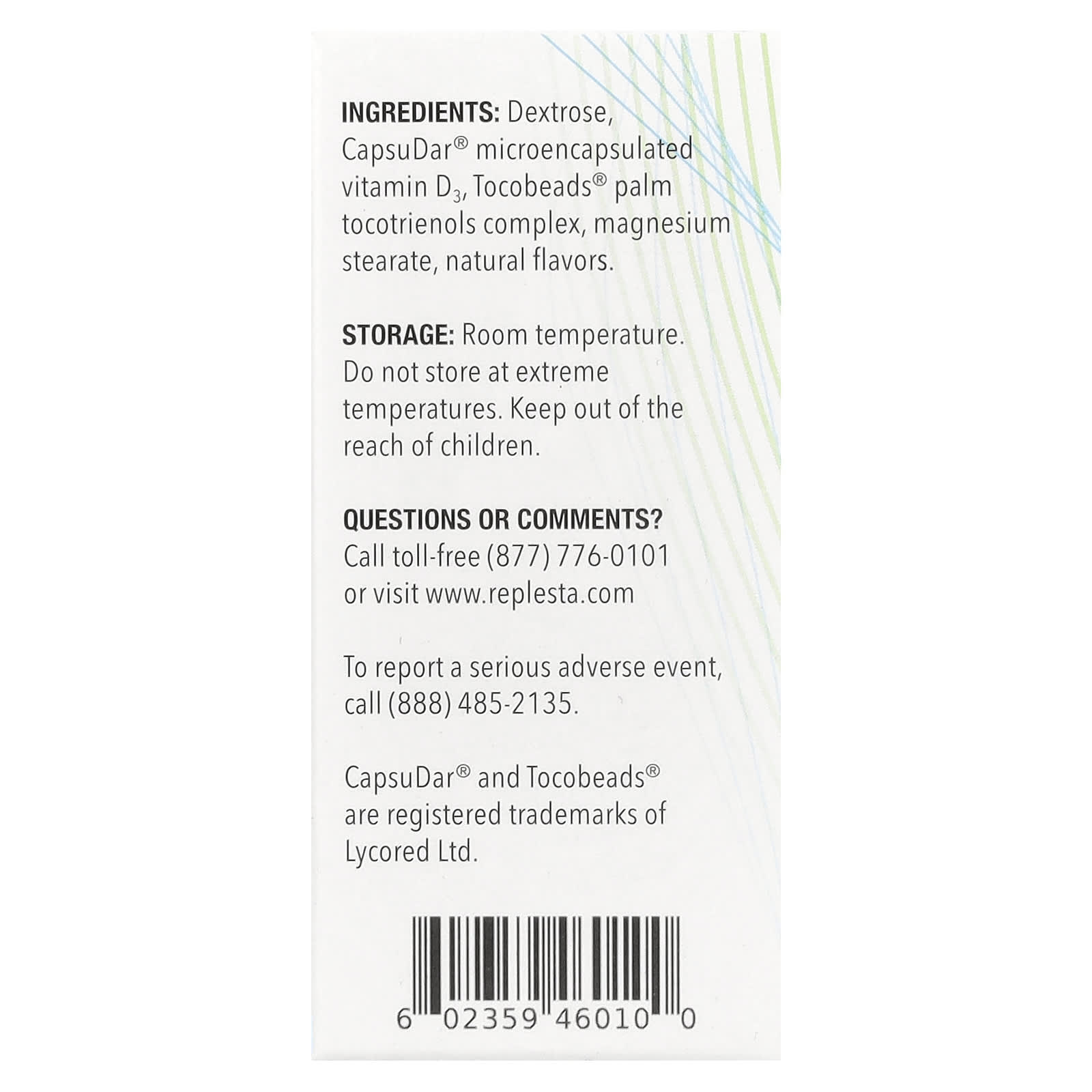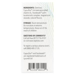 Use apenas sob supervisão médica: Replesta destina-se ao controle alimentar da deficiência de vitamina D. Cada wafer mastigável contém 50.000 UI de vitamina D3.
