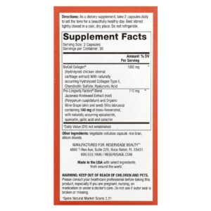 Reserveage Beauty Collagen Booster com Ácido Hialurônico e Resveratrol 60 Cápsulas – Reserveage Beauty Suplementos Ossos, Articulações e Cartilagem Colágeno, Suplementos.