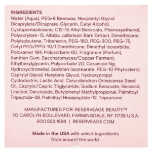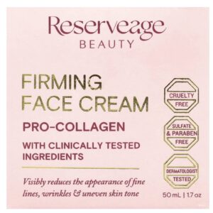 O Creme Facial Firmador da Beleza Reserveage ™ com propriedades de reforço de Pró-colágeno é uma formulação patenteada exclusiva que contém ingredientes naturais comprovados em vários estudos clínicos em humanos para fornecer resultados reais, incluindo a melhoria da aparência do tom da pele facial, uniformidade e textura da pele e a aparência de linhas de expressão / rugas faciais. Além disso, oferece uma tecnologia exclusiva que incorpora peptídeos de cobre microencapsulados para promover a aparência da pele rica em colágeno, proporcionando uma pele jovem, macia e firme e diminuindo visivelmente os sinais de envelhecimento. Esses peptídeos desempenham um papel semelhante na manutenção da aparência de colágeno saudável quando a capacidade natural da nossa pele de produzir colágeno diminui significativamente à medida que envelhecemos.