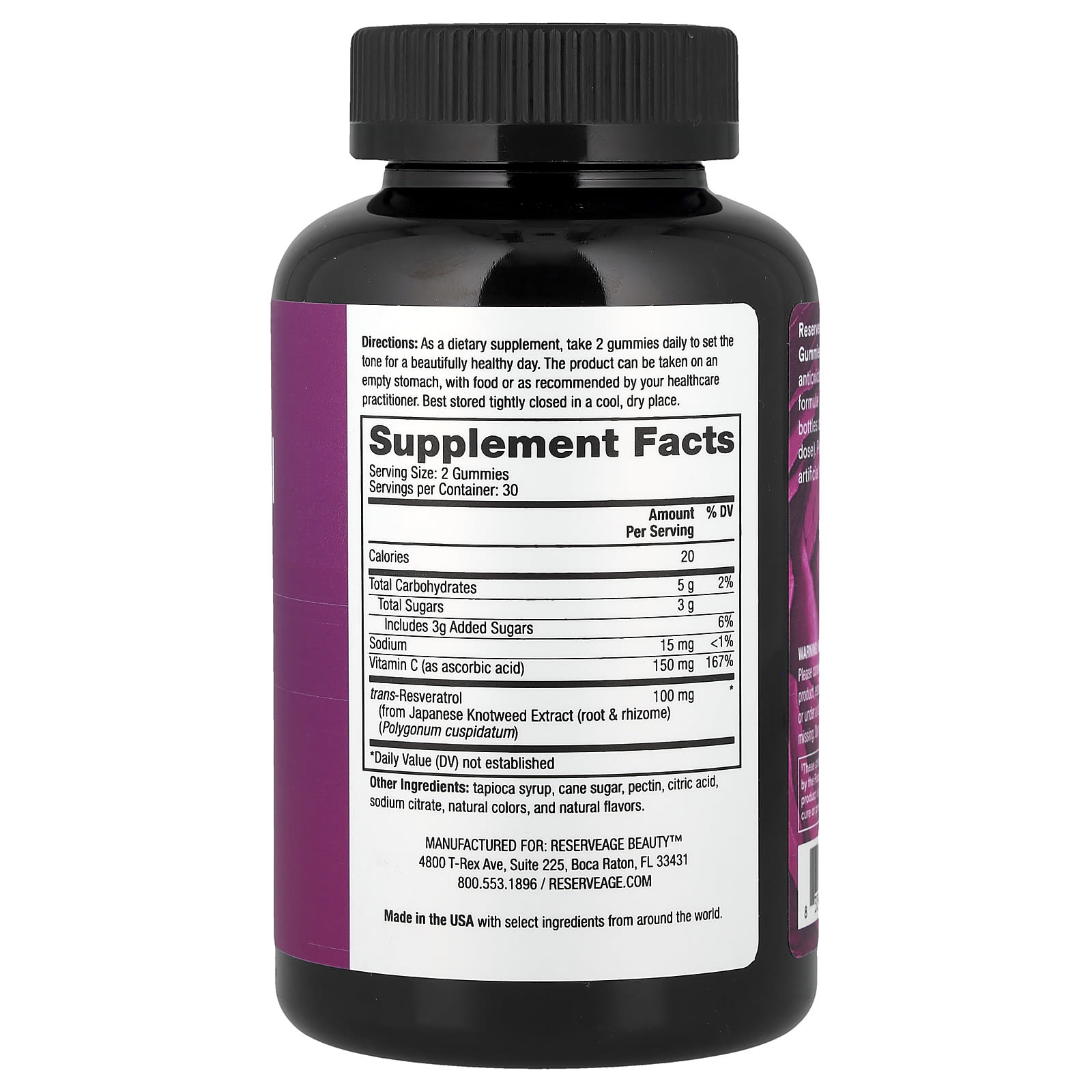 Reserveage Beauty Gomas de Resveratrol Uva 60 Gomas – Reserveage Beauty Suplementos Antioxidantes Resveratrol.