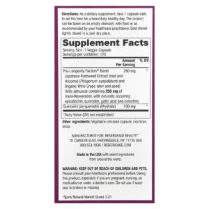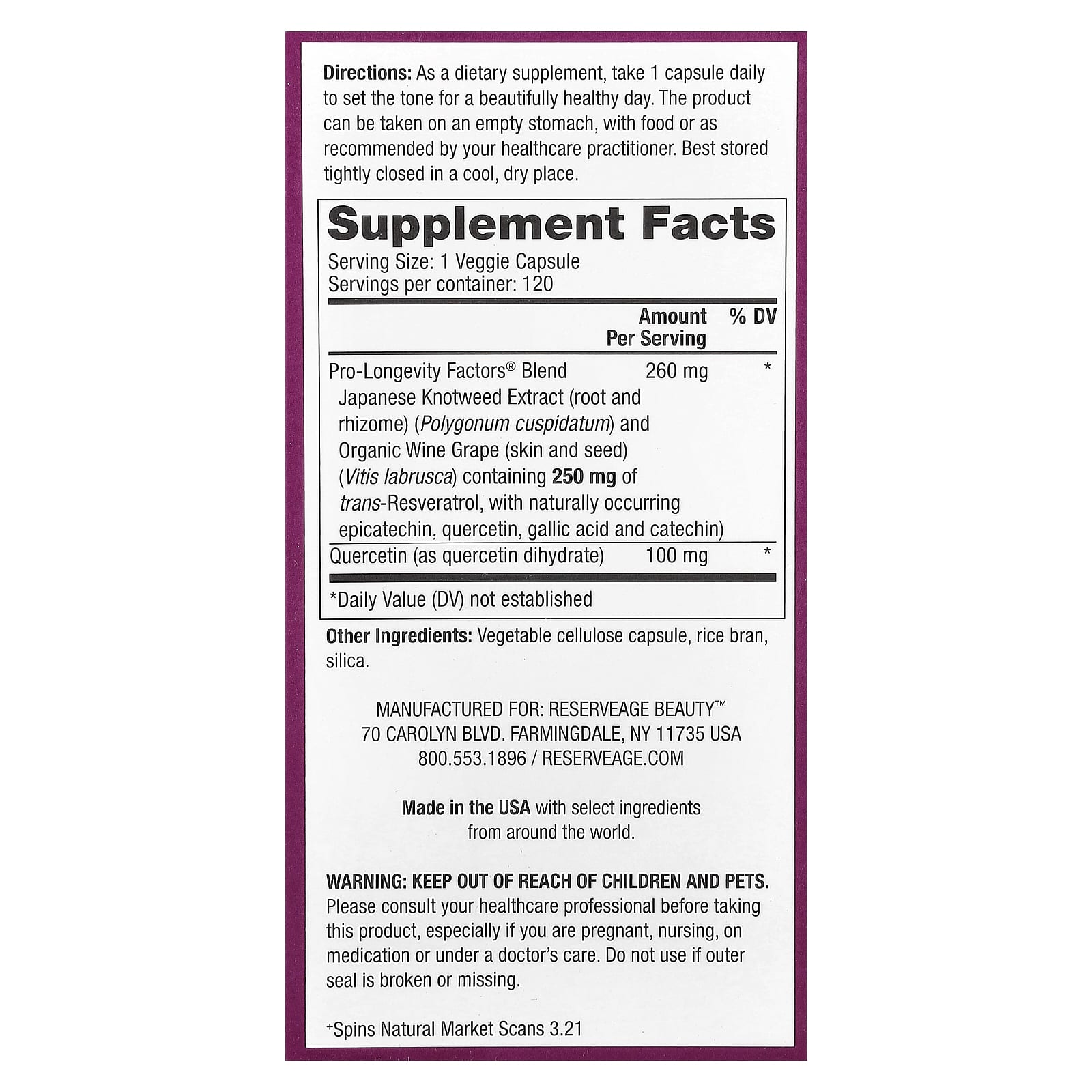 Reserveage Beauty Resveratrol 250 mg 120 Cápsulas Vegetais – Reserveage Beauty Suplementos Antioxidantes Resveratrol.