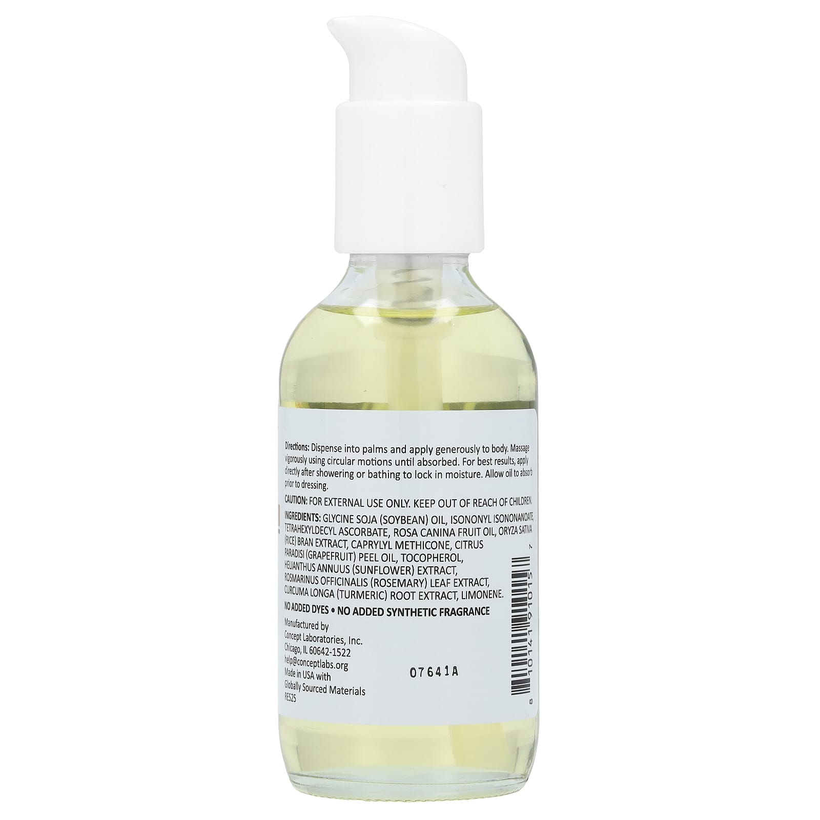 Óleo de Glycine soja (soja), isononyl isononanoate, tetrahexidecil ascorbato, óleo da fruta de Rosa canina, extrato do farelo de Oryza sativa (arroz), caprylyl methicone, óleo da casca de Citrus paradisi (toranja rosa), tocoferol, extrato de Helianthus annuus (girassol), extrato da folha de Rosmarinus officinalis (alecrim), extrato da raiz de Curcuma longa (cúrcuma), limoneno.