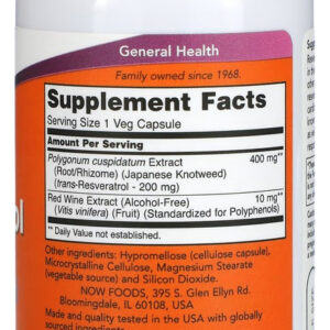 Resveratrol 200mg Now Foods com Extrato de Vinho Tinto 60 Capsulas Formulação Superior – Importado
