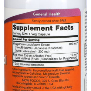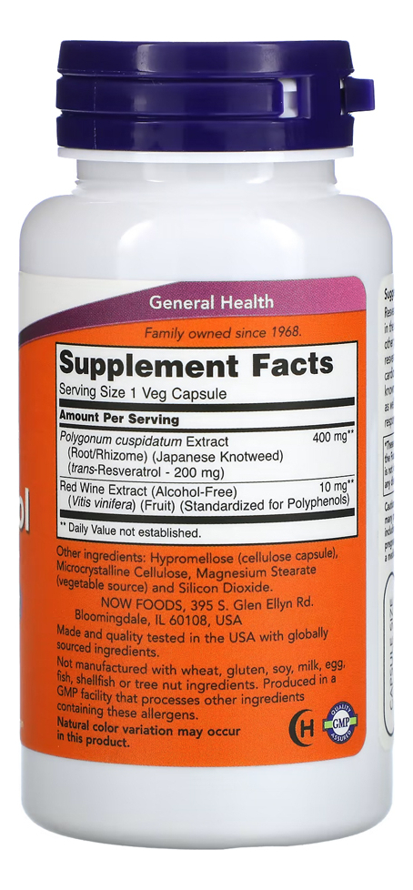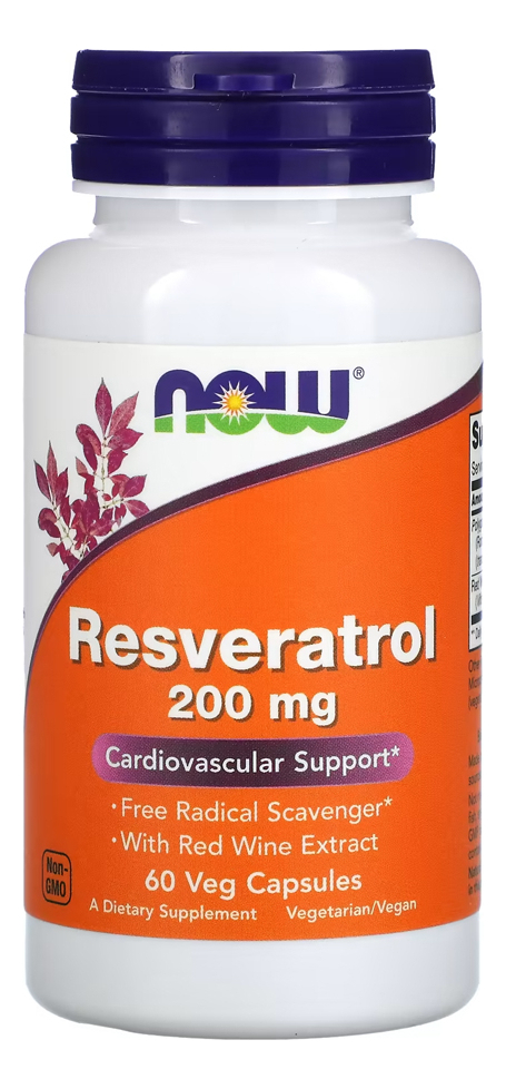 Resveratrol 200mg Now Foods com Extrato de Vinho Tinto 60 Cápsulas