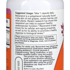 Resveratrol 200mg Now Foods com Extrato de Vinho Tinto 60 Capsulas Formulação Superior – Importado
