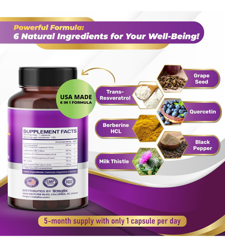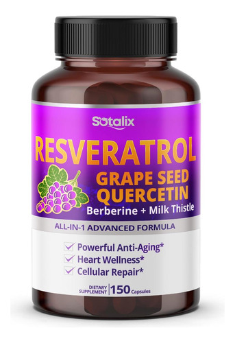 • Valor pendente: o suplemento Sotalix Resveratrol oferece valor notável com uma generosa por porção e 150 cápsulas em cada garrafa, fornecendo uma fonte de 5 meses • Abrace a beleza em todas as etapas da vida com Sotalix Resveratrol: Uma cápsula diária promove a longevidade, bem-estar celular, envelhecimento saudável, suporte imune e bem-estar cerebral • Mistura distintiva: o suplemento Sotalix Resveratrol apresenta uma mistura exclusiva de 6 em 1 de ingredientes premium, como trans-resveratrol, semente de uva, quercetina, cardo de leite, berberina HCl e pimenta preta • Fórmula aprimorada: o suplemento Sotalix Resveratrol combina dois antioxidantes potentes, resveratrol e quercetina, promovendo a pele mais saudável e minimizando os sinais visíveis de envelhecimento • Concentração excepcional de ingredientes: este suplemento possui um poderoso poligonum cuspidatum e cardo de leite, juntamente com um hcl berberina para benefícios aprimorados de bem -estar Color: Marca: SOTALIX SUPPLEMENT Dimensiones: 0.11 x 0.06 x 0.06mts. Peso del Producto: 0.12 Kilogramos. Peso de Envio: 0.12 Kilogramos. Modelo: B0CH2PNDN7 Garantia do vendedor: 30 dias