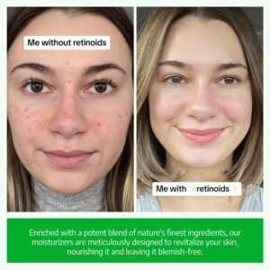 • Tom de pele uniforme: obtenha uma tez mais equilibrada com o nosso hidratante de retinol, habilmente concebido para atenuar manchas escuras e hiperpigmentação, deixando a pele com um tom uniforme e radiante.