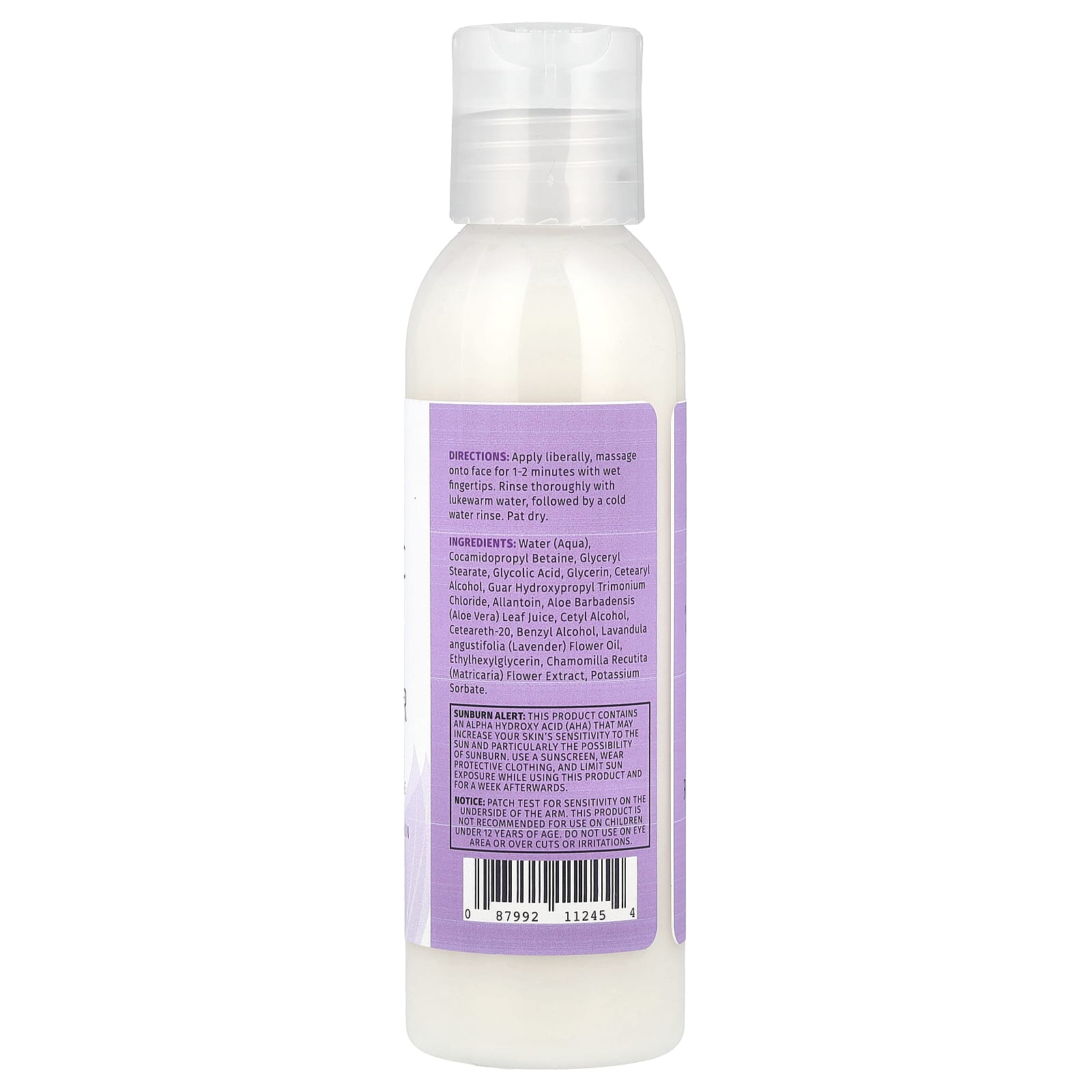 Água (aqua), cocoamidopropilbetaína, monoestearato de glicerila, ácido glicólico, glicerina, álcool cetoestearílico, cloreto de guar hydroxypropyl trimonium, alantoína, suco da folha de Aloe barbadensis (babosa), álcool cetílico, ceteareth-20, álcool benzílico, óleo da flor Lavandula angustifolia (lavanda), ethylhexylglycerin, extrato da flor de Chamomilla recutita (matricária), sorbato de potássio.