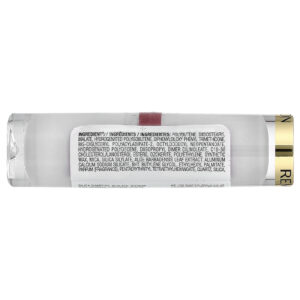 Polybutene, diisostearyl malate, poliisobuteno hidrogenado, diphenylsiloxy phenyl trimethicone, bis-diglyceryl polyacyladipate-2, neopentanoato de octildodecil, hydrogenated polydecene, diisopropyl dimer dilinoleate, ésteres de lanosterol/colesterol c10-30, ozocerita, polietileno, cera sintética, mica, sililato de sílica, extrato da folha de Aloe barbadensis, silicato de alumínio e cálcio sódico, bht, butilenoglicol, ethylhexyl palmitate, perfume (fragrância), pentaerythrityl tetraethylhexanoate, Quartzo, sílica, silica dimethyl silylate, hialuronato de sódio, caprylyl glycol, fenoxietanol, tocoferol, óxidos de ferro (CI 77491), óxidos de ferro (CI 77499), vermelho rubi laca de alumínio (CI 15850), dióxido de titânio (CI 77891), tartrazina laca de alumínio (CI 19140), vanilina.