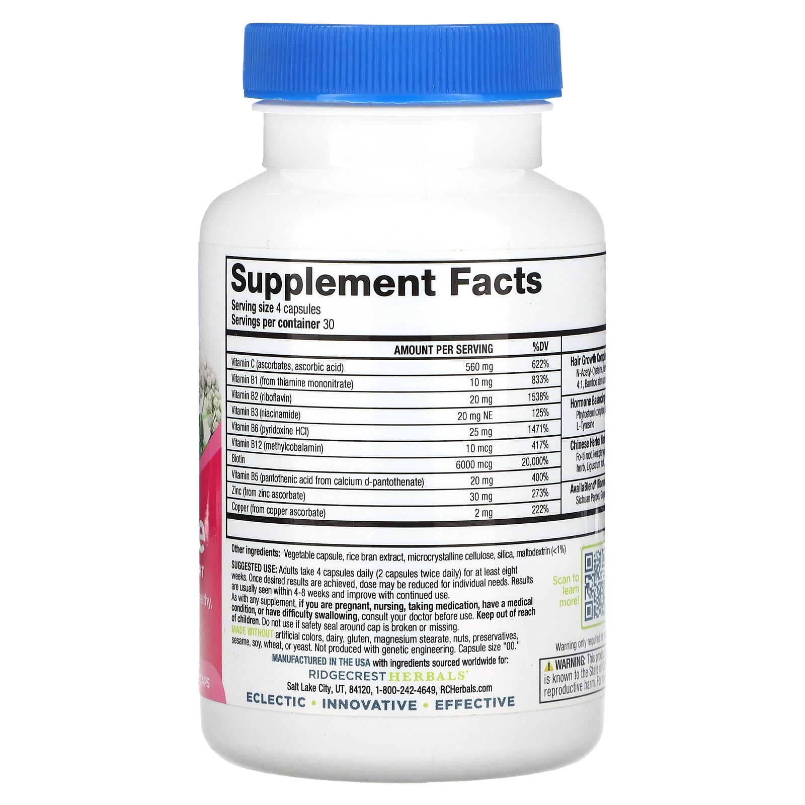 RidgeCrest Herbals Hair ReVive 120 Cápsulas – RidgeCrest Herbals Suplementos Cabelos, Pele e Unhas Fórmulas para cabelos, pele e unhas.