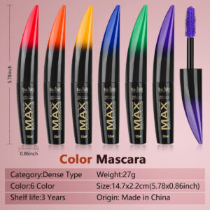 Rímel colorido Joyeee, conjunto de rímel colorido de 6 cores, rímel de longa duração à prova d'água e à prova de manchas para cílios, rímel azul, roxo, verde, vermelho, amarelo e laranja — Rímel colorido — Existem 6 cores de rímel cor de arco-íris para criar lindos cílios coloridos, finos e encaracolados. Deixe seus olhos mais radiantes e em movimento. – Resistente à prova d'água e à prova de manchas — Usando uma fórmula exclusiva, o rímel é mais forte, à prova d'água e à prova de manchas. Definitivamente, você pode usá-los o dia todo e não se preocupar em sujá-los e soltá-los. – Facilmente aplicar e remover — Este rímel é aplicado facilmente com um aplicador e permanece com um acabamento brilhante. Se você gosta do efeito escuro, pode colocar mais casacos. E é muito fácil de remover com um removedor de maquiagem para os olhos. – Rímel volumoso – Eles geralmente mantêm os cachos muito melhor e você não se preocupa com os cílios muito curtos. E então você tem olhos grandes e brilhantes, parecendo mais cheios e grossos. – Presente perfeito para maquiagem para os olhos – É uma maquiagem hipoalergênica vegana e livre de crueldade. Será ideal para meninas ou mulheres em festas de aniversário, shows de cosméticos, shows ao vivo, noites de formatura, festas de dança e maquiagem de casamento.