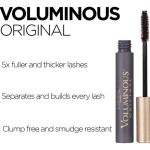 Máscara impermeável original L'Oreal Paris Makeup Voluminous, preta, marrom, 0,28 fl oz (pacote com 2) — Máscara volumosa para aumentar o volume: a máscara volumosa L'Oreal Paris, que maximiza de forma exclusiva, cria cílios com 4 vezes sua espessura natural. Cílios mais longos e uma aparência de olhos cheia e dramática em uma única aplicação sem grumos – Pincel de rímel volumizador: nossa fórmula e pincel para cílios que maximizam o volume constroem e engrossam os cílios de maneira uniforme e suave. Um rímel alongador que deixa os cílios flexíveis e macios, praticamente sem escamas, manchas ou grumos — Máscara de maquiagem à prova d'água: fácil de remover com removedor de maquiagem à prova d'água e adequada para uso com olhos sensíveis e usuários de lentes de contato — Porque você vale a pena: crie a aparência que quiser com nossa linha completa de maquiagem, incluindo bases, corretivos, maquiagem iluminadora, lápis de sobrancelha e paleta de sombras tetas, batons e muito mais – L'Oreal Paris Beauty: Uma empresa líder em cuidados de beleza completos com sede em Paris, oferecemos produtos inovadores e experiência exclusiva da especialistas em beleza em maquiagem, cuidados com a pele, cuidados com o cabelo, estilo e cor do cabelo