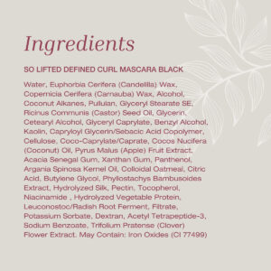 Máscara So Lifted Defined Curl Black — Uma máscara que levanta os cílios e oferece volume e comprimento leves para uma aparência de olhos grandes e arregalados sem grumos, descamação ou manchas. – Aplique o rímel da raiz às pontas para ondular e alongar os cílios. Aplique uma segunda camada para obter um efeito mais dramático. – A escova curva se levanta até a última para obter a ondulação e a espessura perfeitas, enquanto o óleo de argan e coco ajudam a manter os cabelos mais fortes e reduzir a precipitação – Polímeros vegetais levantam, revestem e mantêm os cílios curvos para um drama revelador