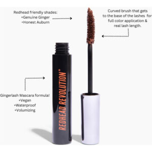 As a redhead, you know how difficult it can be to find mascara shades that complement your natural skin, hair, and beauty. The contrast of dark makeup against fair lashes can look intense and unnatural. Youre left to choose between not wearing make-up at all, or donning a shade that doesnt suit you. Enter REDHEAD REVOLUTION: Founded by a redhead to save other redheads from this terrible dilemma. Our Gingerlash formula upgrades your mascara experience from off-color gloom, to the mascara you always should have had! Try it in two gorgeous shadesGenuine Ginger and Honest Auburnboth water resistant for reliable wear all day. – Genuine Ginger: A warm, light saddle brown color is the lightest of the two shades. – Honest Auburn: A brown with a hint of red. Its the darkest of our two shades. Swipe on for a subtle lash enhancement or layer for a more intense makeup effect. All About The Blend & Brush: When designing the Gingerlash mascara formula, we selected a new polymer technology to give you greater volume without flaking or smudging. Whats more, every wand is tipped with a 5-grooved brush that curves as it coats each lash with this luxuriously lengthening, confidence strengthening formula. Not only are we crazy for color, were incredibly passionate about quality and ethics. Thats why our products are VEGAN and Leaping Bunny Certified Cruelty-Free. Redhead Revolution Mascara is designed in California and made in the USA in accordance with GMP standards. – MASCARA FOR REDHEADS: Enhance your lashes with colors specifically formulated for your naturally beautiful, red and blonde tones. – VEGAN & CRUELTY-FREE certified by Leaping Bunny, made responsibly right here in the USA. – CLEAN FORMULA & MADE WITHOUT: Formulated without parabens, gluten, and soy. – ADD COLOR & VOLUME: Redhead Revolution Gingerlash Mascara was designed to be your everyday go-to mascara. The shades are perfect for those lighter makeup days or you can layer the mascara for a more intense lash look. – WATER RESISTANT for ALL DAY WEAR: Show off your gorgeous lashes all day! Made with new polymer technology to prevent smudging and flaking, every coat dries quickly for easy building, without the clumpy tarantula lash look.