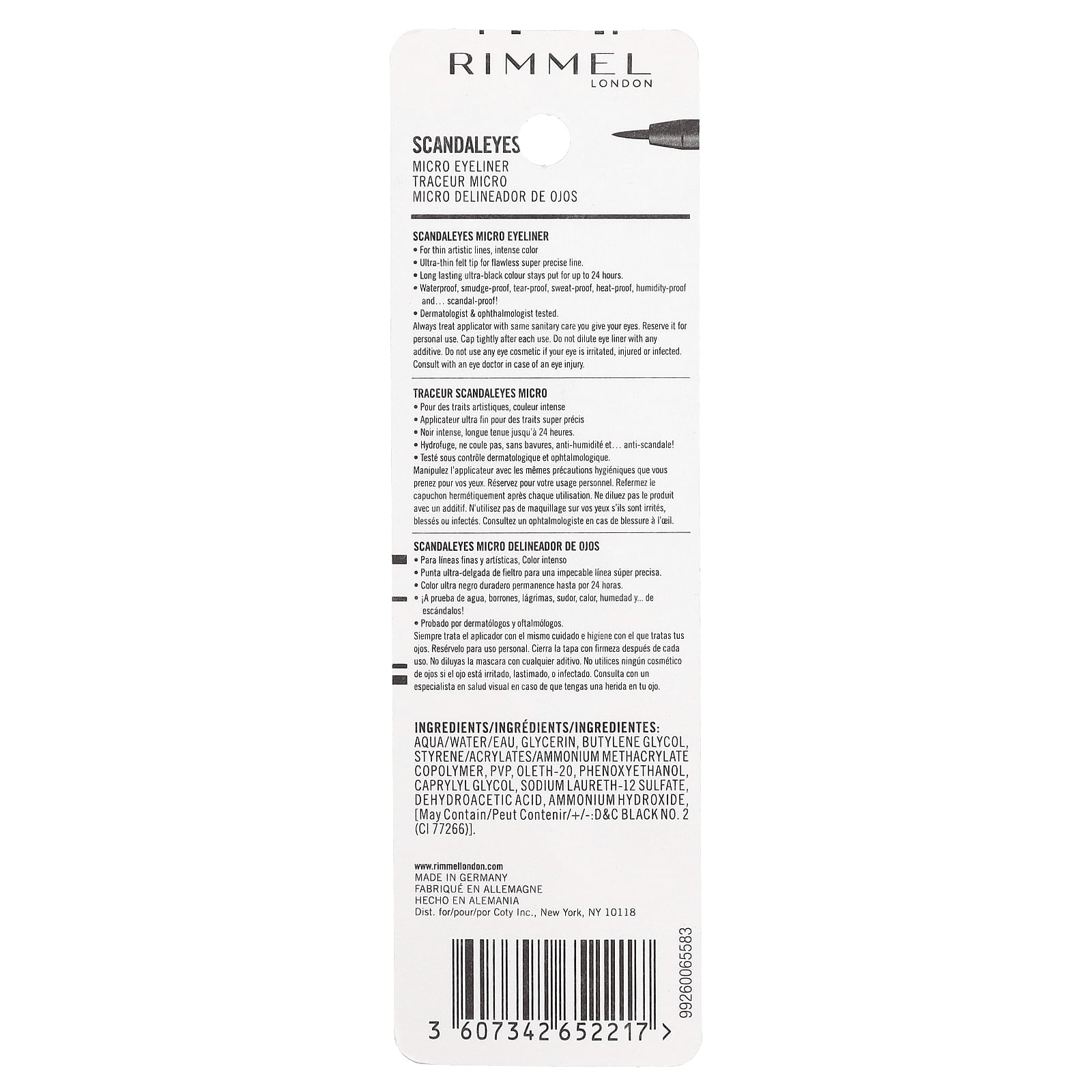 Rimmel London Escadaleyes Micro Delineador 001 Preto 11 ml (0037 fl oz) – Rimmel London Beleza Maquiagem Olhos Delineador de olhos.