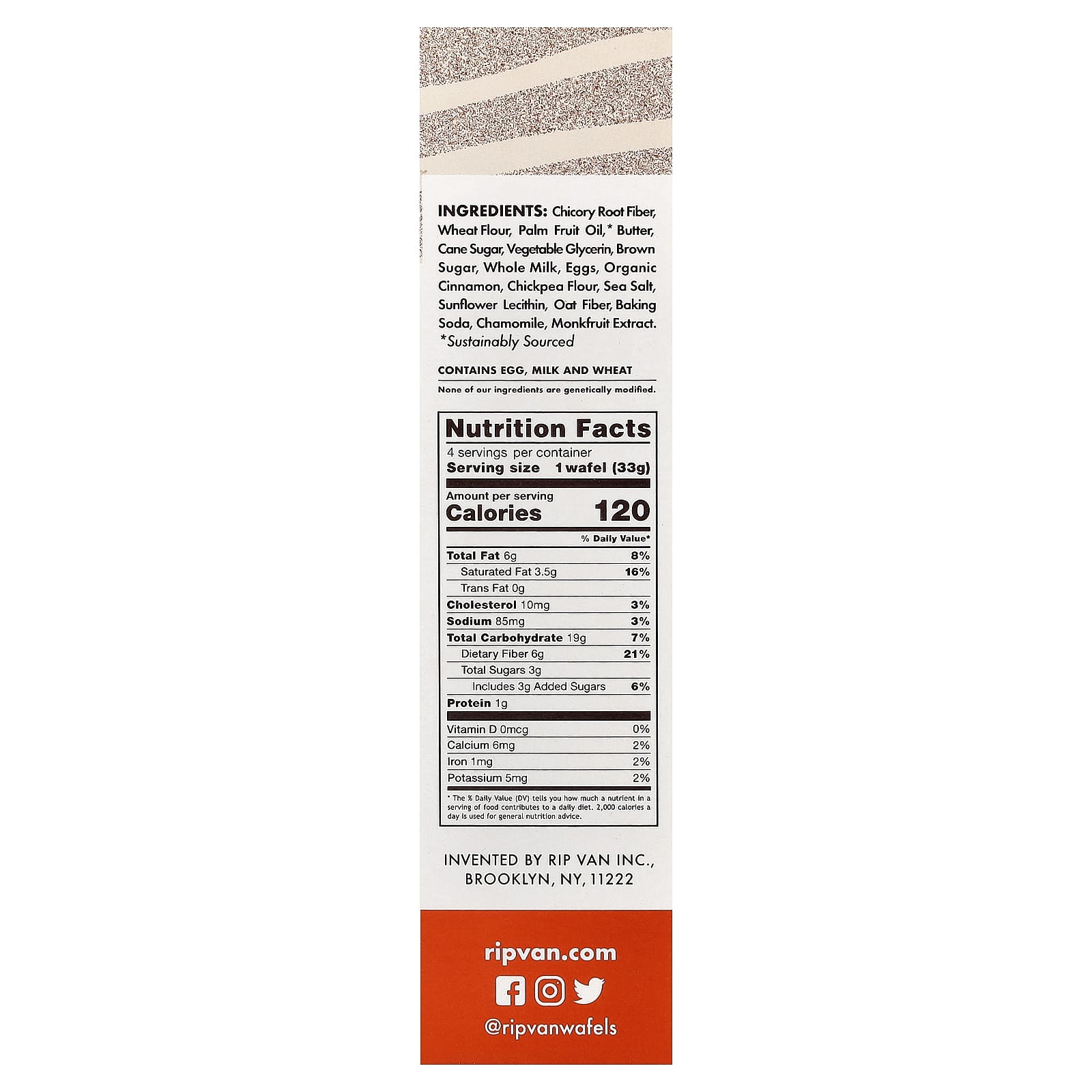 A inspiração por trás do nosso Rip Van Wafel foi oferecer aos americanos um lanche único, indulgente e sem culpa. Nossa terceira versão do stroopwafel holandês reinventado tem apenas 3 gramas de açúcar. Isso significa menos de 1/4 do açúcar* do biscoito favorito da América e mais 6x mais fibra!** Agora vá e delicie-se sem culpa!