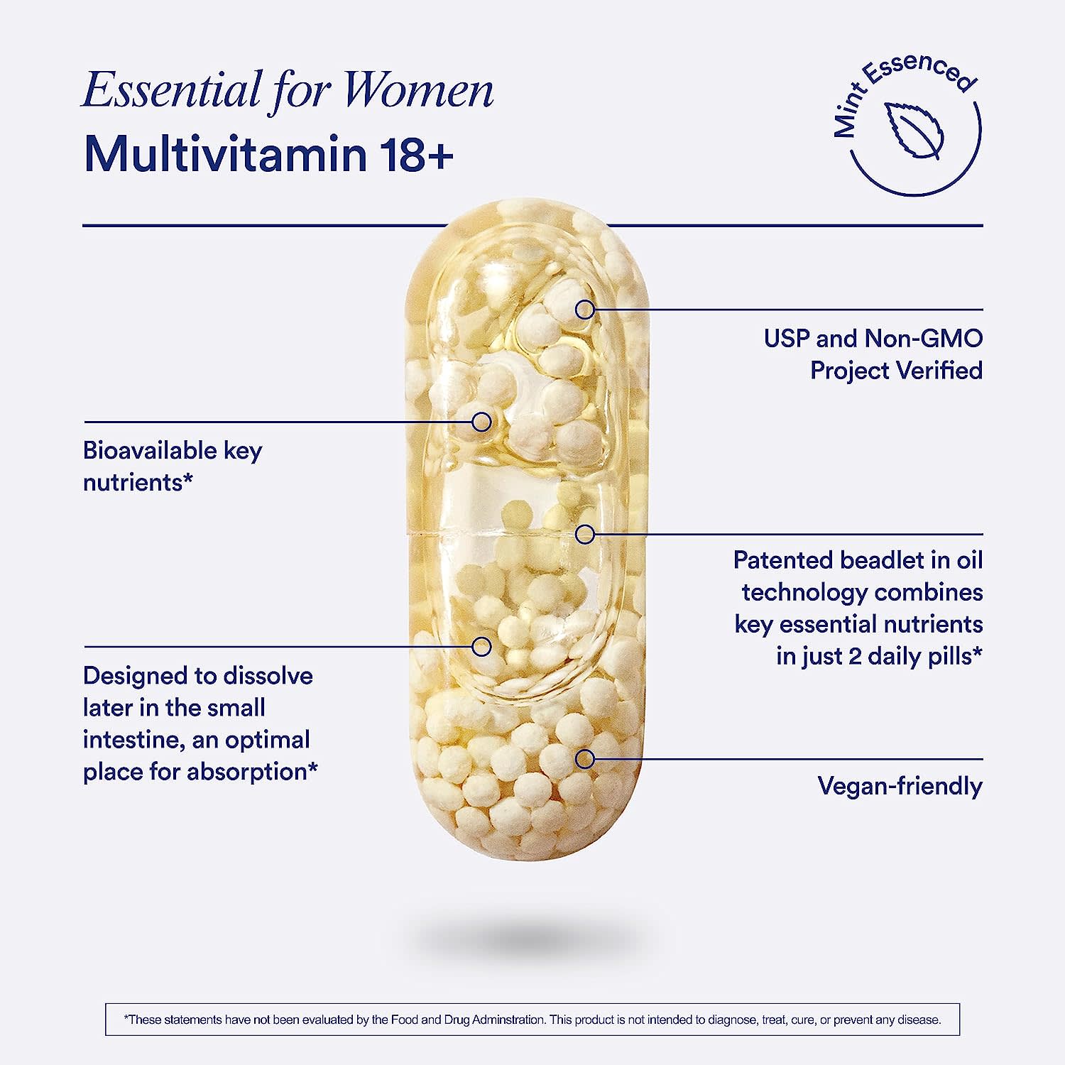 Ritual Essencial para Mulheres Multivitamínico 18+ Menta 60 Cápsulas Veganas – Ritual Suplementos Saúde da Mulher Multivitamínico Feminino.