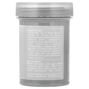 Cápsula vegana externa resistente ao ácido estomacal (hipromelose, goma gelana), óleo de triglicerídeos de cadeia média (derivado de coco), cápsula vegana interna (hipromelose), sílica, celulose.
